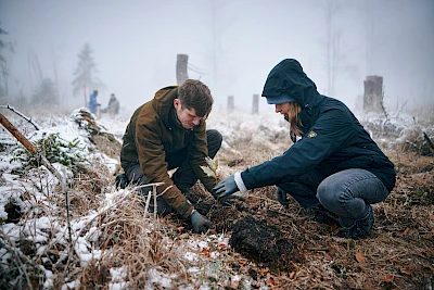 Gemeinsam mit ThüringenForst, einer Schulklasse aus Sachsenbrunn und der Schutzgemeinschaft Deutscher Wald haben die Volksbanken Raiffeisenbanken die ersten Baumsetzlinge gepflanzt, die von Bürgerinnen und Bürgern gespendet wurden. Auf einer durch Sturm, Dürre und Borkenkäfer stark geschädigten Fläche setzt die Aktion ein starkes Zeichen für die Zukunft unserer Wälder.