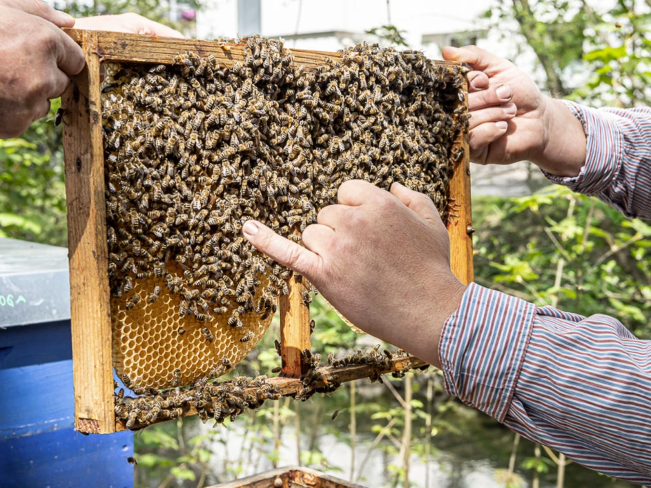 Die Förderung von Biodiversität ist der Volksbank Oberberg ein zentrales Anliegen. Es brummt und summt in Oberberg. Denn: neuerdings zählen 500.000 Bienen zum erweiterten Personal. Mit der Betreuung von zehn Bienenstöcken verbindet die Bank ökologische mit ökonomischen Aspekte.