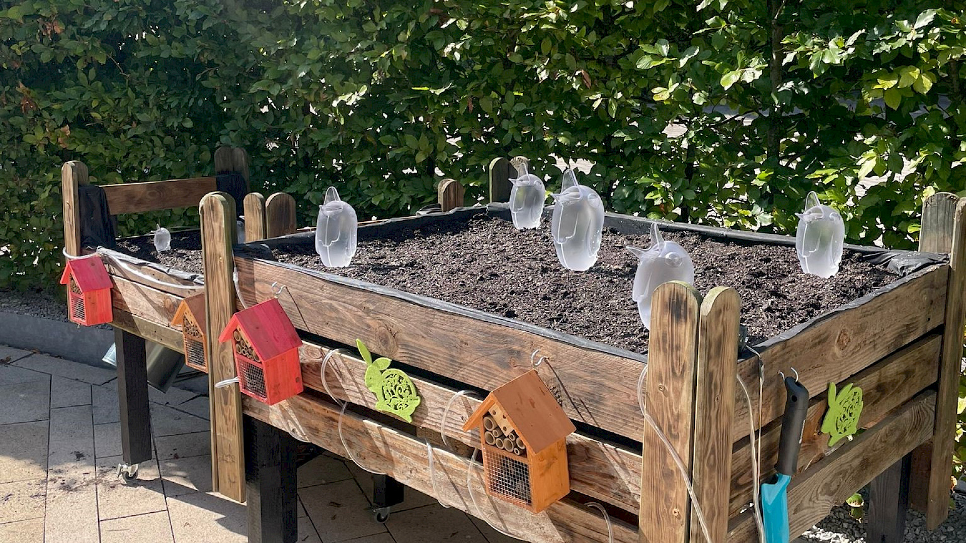 Durch das Anpflanzen von Blumen + Gemüse und die Verwendung von Kaffeesatz als Dünger fördern wir die Gemeinsamkeit und einen gesunden Lebensstil.